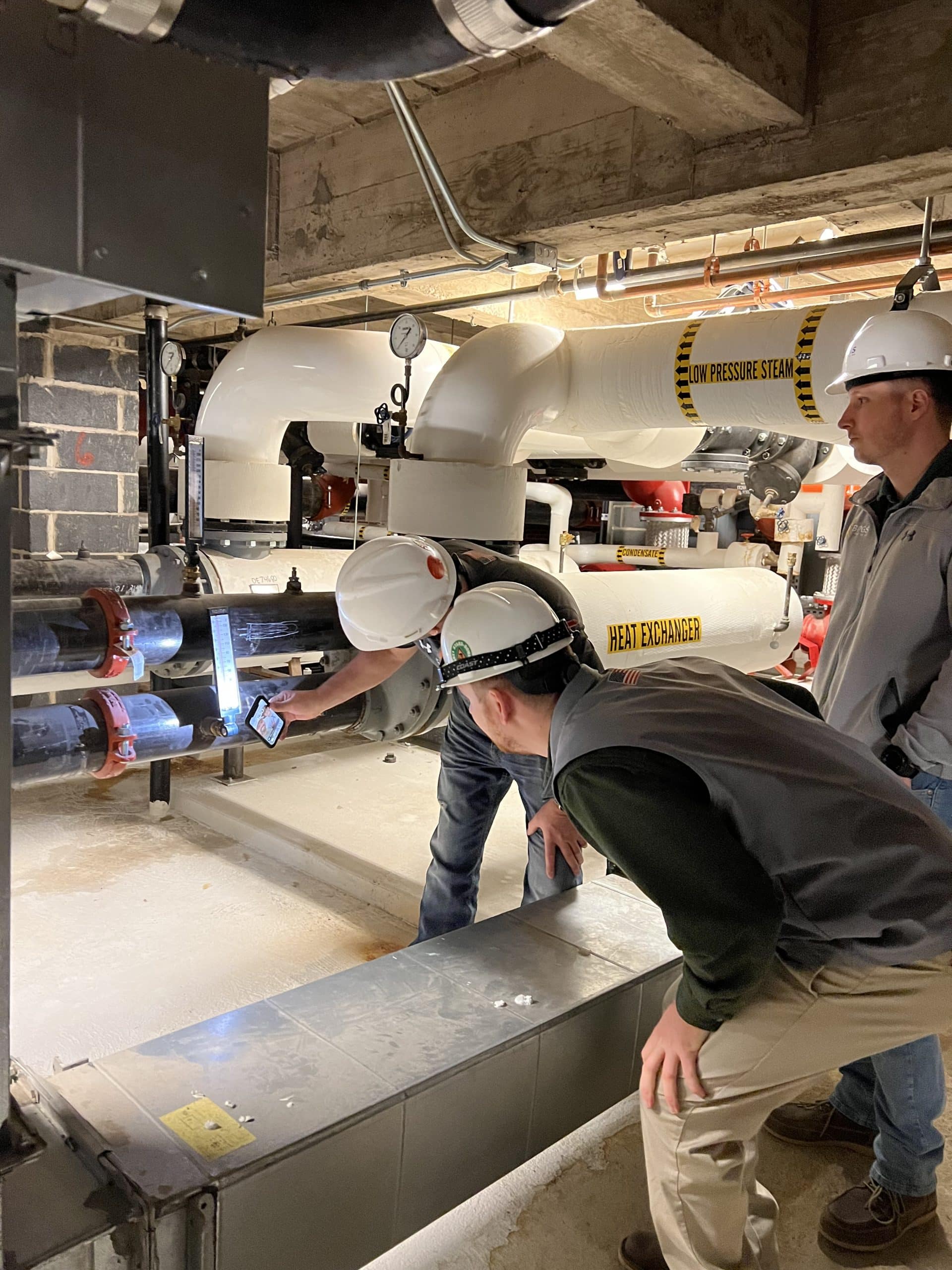 When the WSHP is in heating mode, the steam-powered heat exchanger is working to increase the water loop temperature. For Phase I we are utilizing tube style heat exchangers which are more efficient as they have a high heat transfer rate. In Phase II of Nemours Residential, we will be switching to boilers for heat injection.