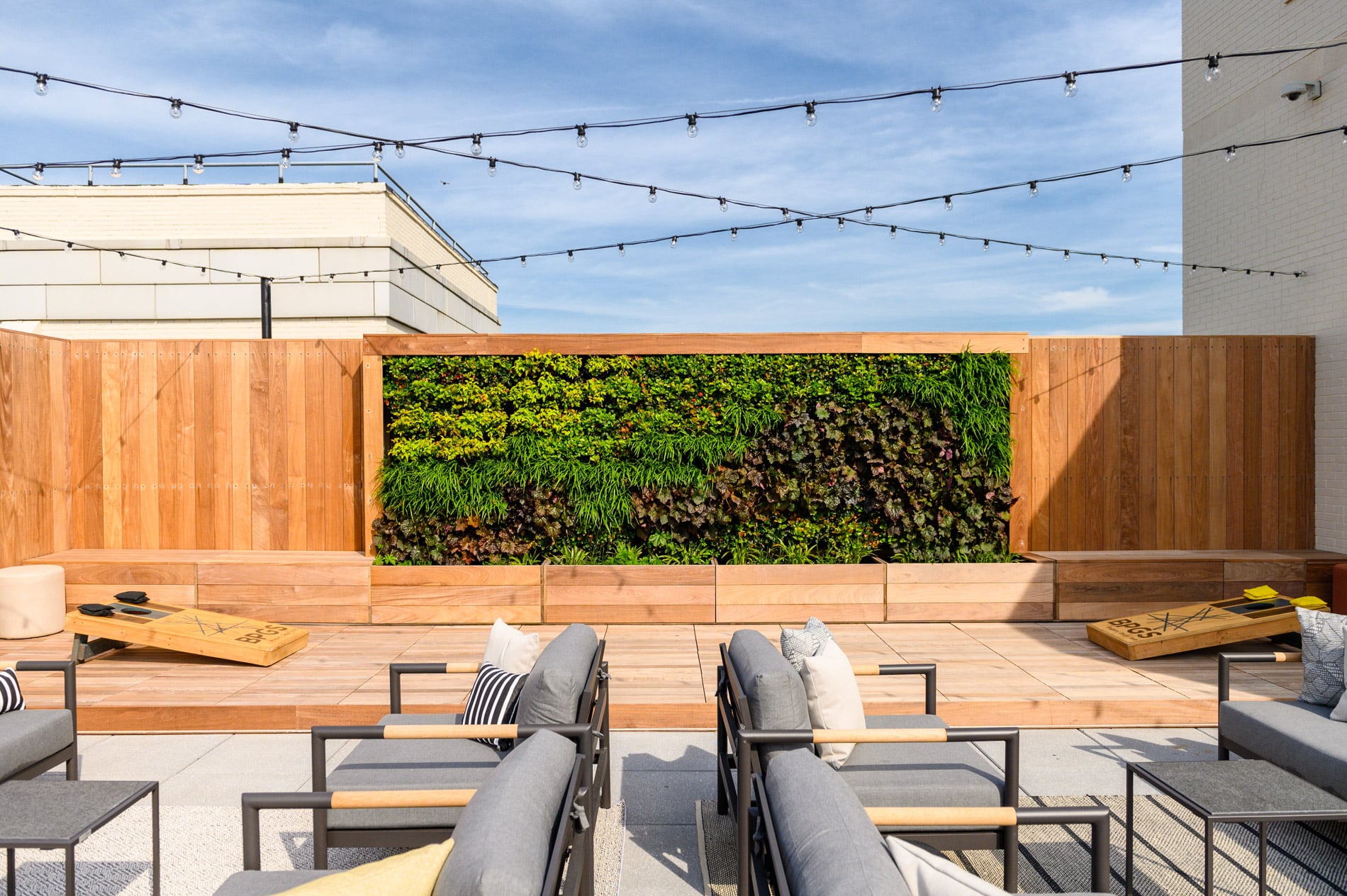101 dupont place offers studio, one, two, and three bedroom apartment homes with state-of-the-art features that embrace sophistication and style, including smudge-free stainless-steel appliances available in traditional or matte black, wifi-enabled smart thermostats, backlit vanity mirrors, and Latch Keyless Access. Amenities at 101 dupont place encourage residents to make the most of everyday living, like a rooftop deck that is ideal for entertaining with a BBQ grill and fireplace, coworking space perfect for working from home, and fitness center with Peleton equipment essential for staying active. The community also features a resident lounge in the historically-preserved DuPont Company boardroom, a movie theater room, and a pet washing station.