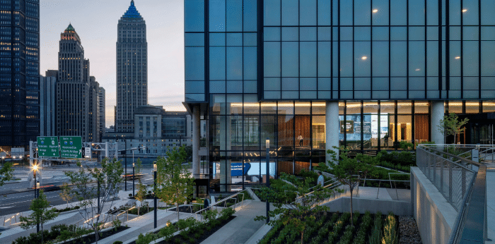 Designed by Gensler, FNB Financial Center is a 26-story, Class A office tower that redefines Pittsburgh’s Central Business District. Rising over 400 feet, this landmark development is the first commercial building on the former site of the Pittsburgh Civic Arena and the first multi-tenant office tower in downtown Pittsburgh in four decades. FNB Financial Center is LEED Gold certified, anchoring Pennsylvania’s first LEED Gold for Neighborhood Design district and setting a new standard for sustainable urban development.