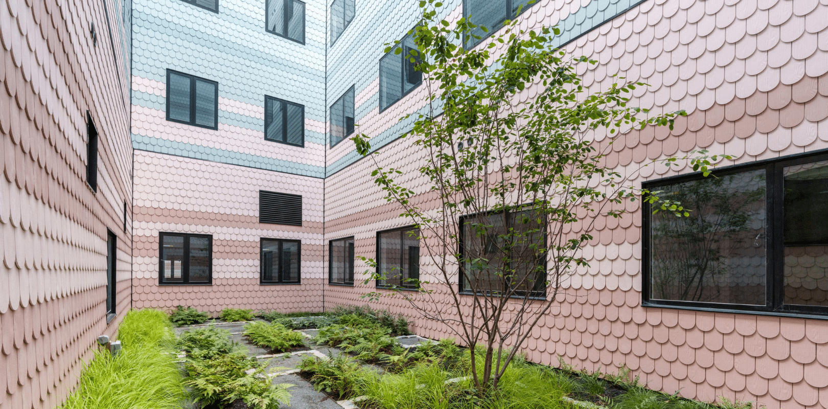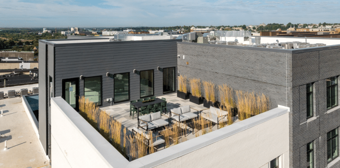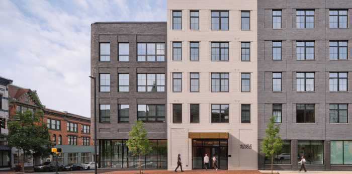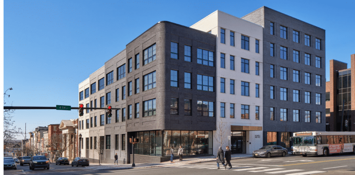 - The development spans three buildings increasing from four to six stories across the site. Read about the groundbreaking ceremony here.