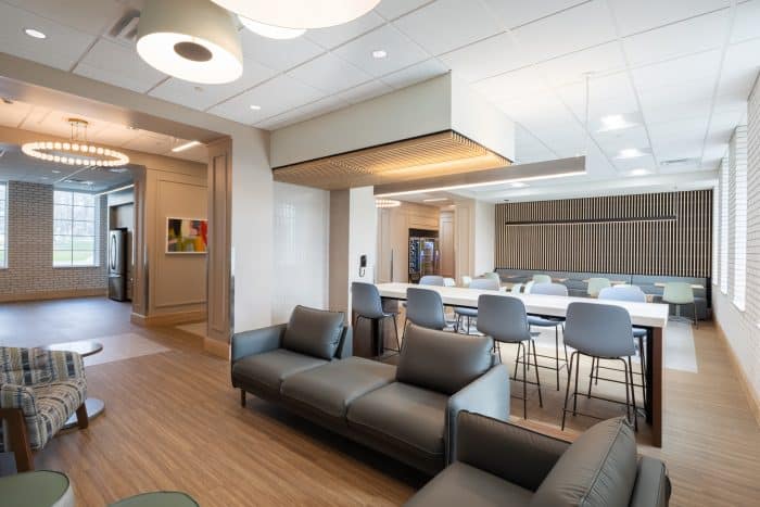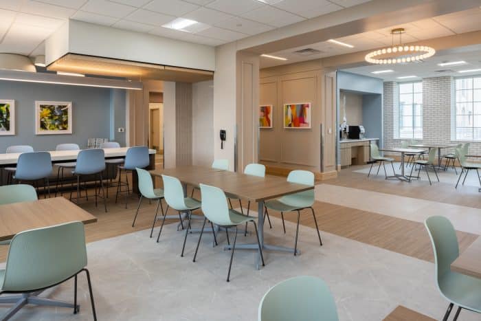 The result is a modern administrative workplace that supports Nemours Children’s Health operations while maintaining the integrity of a historically significant campus structure.