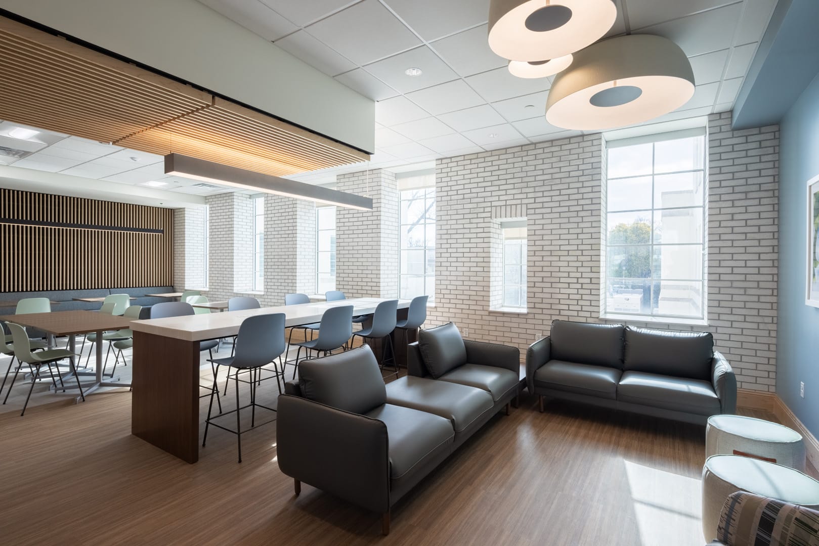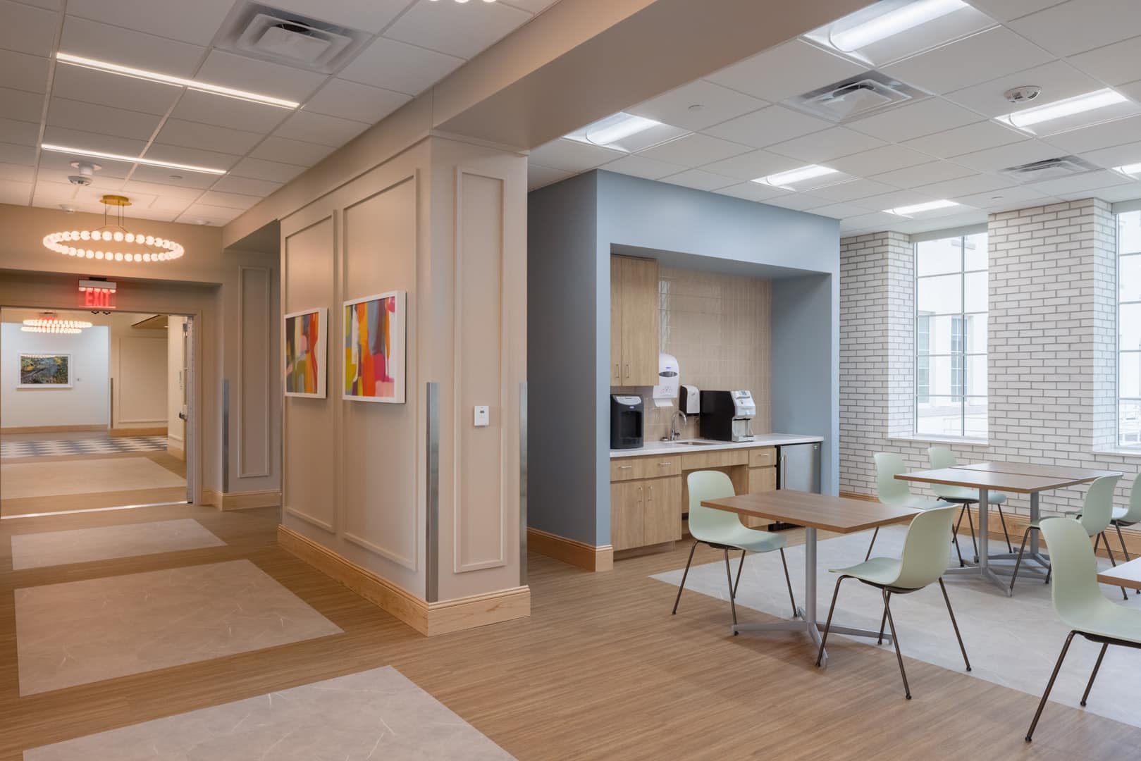 The result is a modern administrative workplace that supports Nemours Children’s Health operations while maintaining the integrity of a historically significant campus structure.