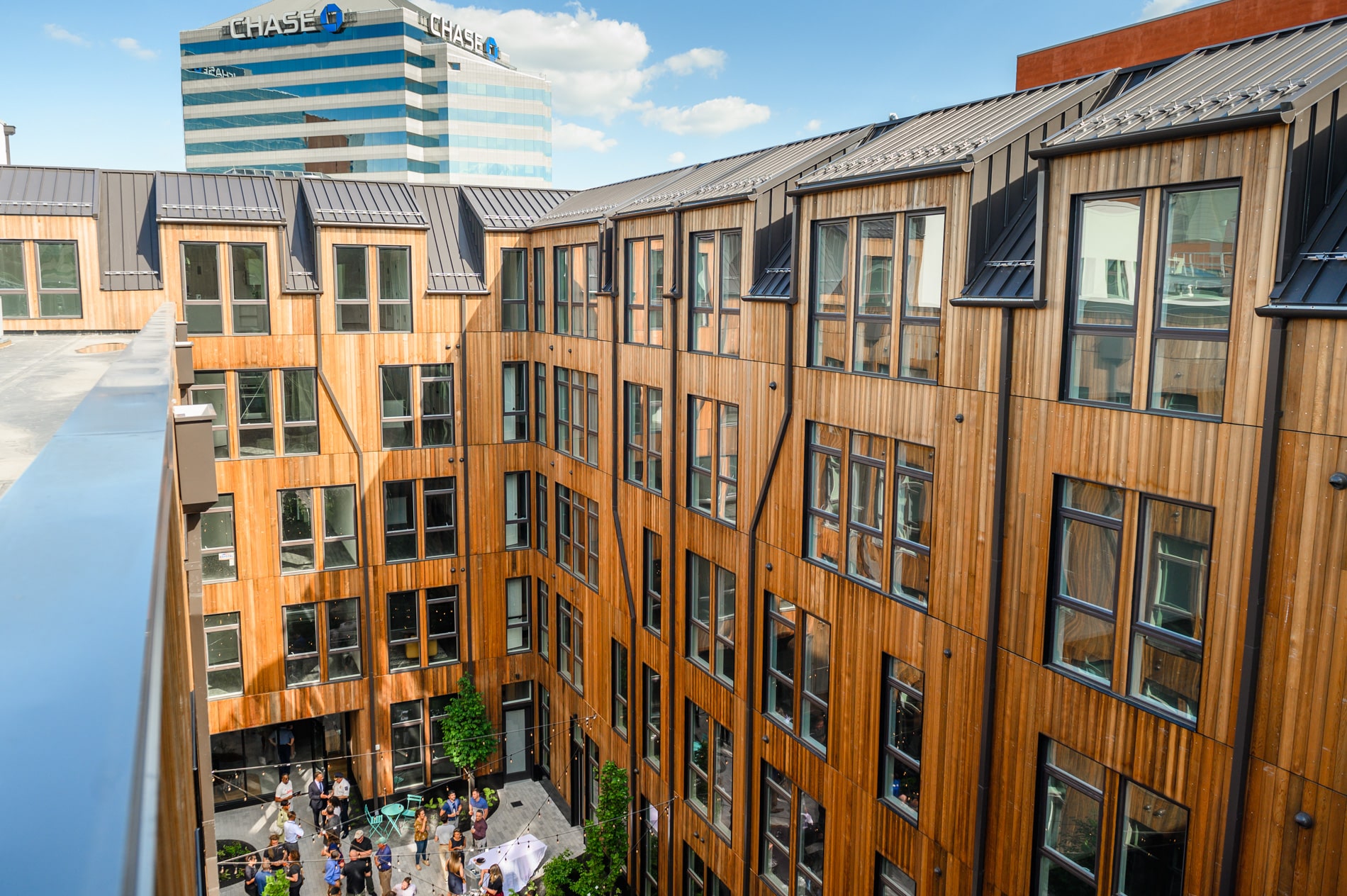 Following the ribbon cutting ceremony, guests enjoyed an exclusive reception featuring tours of the impressive community; refreshments provided by neighboring businesses Milk & Honey Café, Green Box Kitchen, Eat Clean Juice Bar, and Makers Alley; and curated collections from local artists Geraldo Gonzalez, Eunice LaFate of LaFate Gallery, and Jimmy Thompson of City Painting Group.